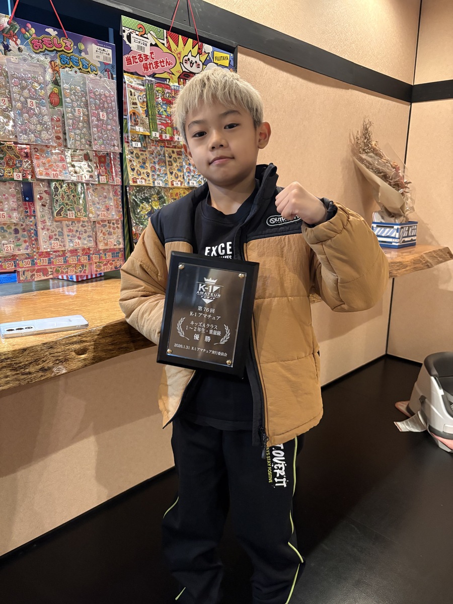 何と第76回K-1アマチュア K-1キッズ(小学生) Aクラス 1~2年生 重量級 トーナメント 藤野 光樹 優勝