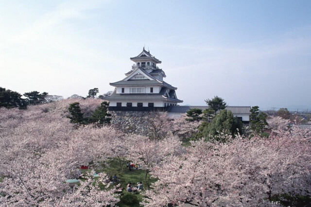 長浜城歴史博物館を囲むように桜の木が植えられており浜城の天守閣(展望台)から見る眺めは、さながら桜の海の様で壮観です。